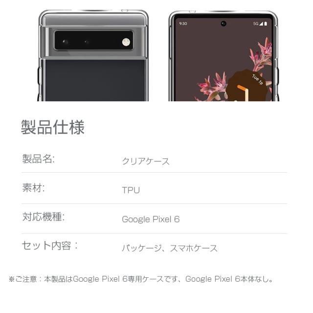 Google Pixel 6 スマホケース TPU スマホカバー 携帯電話ケース 衝撃吸収 擦り傷防止 耐衝撃 薄型 軽量 ソフトケース クリア 滑り止め