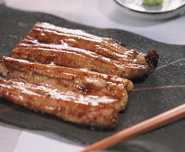 2つの味わいを楽しめる浜名湖産のうなぎのみを使い、丁寧に焼き上げ。たれは保存料無添加の醤油をベースに作られています。蒲焼きと、希少な肝の蒲焼き、両方を味わうことができるセットです。