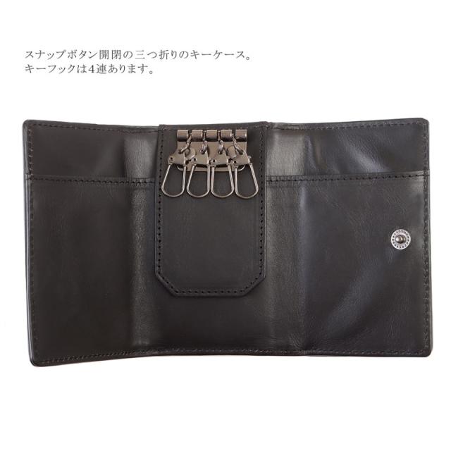 スナップボタン開閉の3つ折りキーケース。