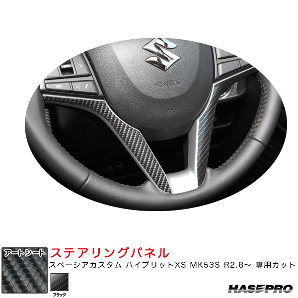 ハセプロ マジカルアートシート ステアリングパネル スペーシアカスタム ハイブリットXS MK53S R2.8〜 【ブラック】 MS-STPSZ4