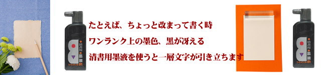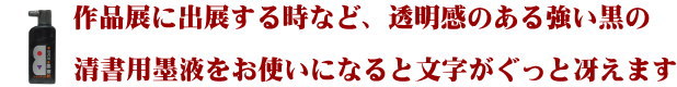透明感のある強い黒で、書きやすさと美しいのが特徴。半紙用で乾きが早く表具性がよい墨液です。