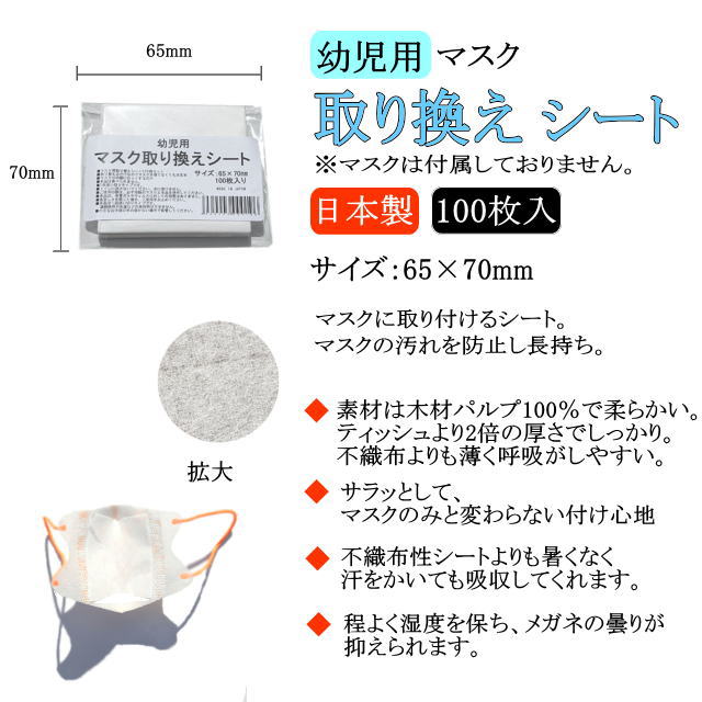 日本製 幼児用 抗菌マスクシート 100枚 マスク フィルター 取り替え 取替 シート 抗菌 銀イオン 肌荒れ防止 布マスク対応 汗 暑さ 対策 在庫あり 中敷き 国産 送料無料