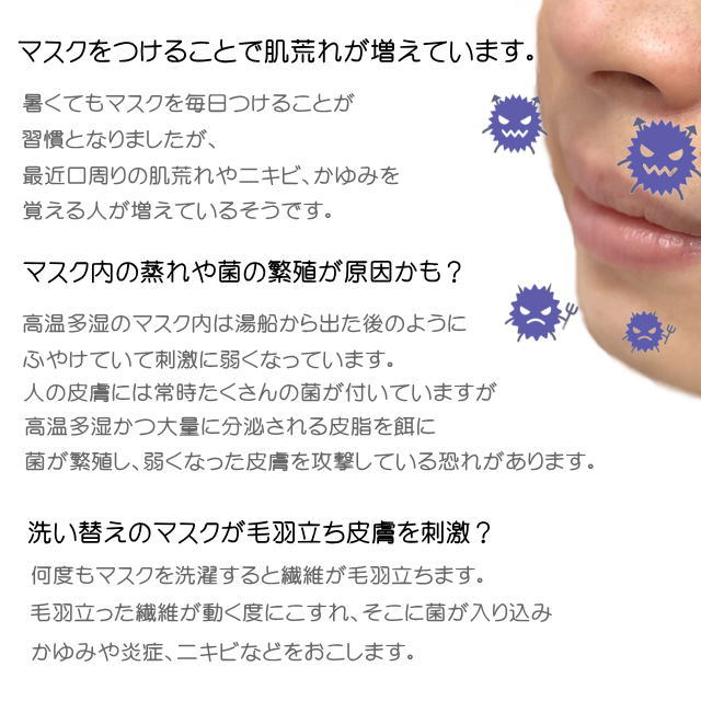 このシートをマスクとの間にセットしてお使いいただくことでマスク内の細菌の繁殖を抑え肌トラブルも抑えてくれます。さらに、口臭も抑える効果があり、マスクを付けた時の自分の口臭さが気にならなくなります。(個人差あり) また、程よく湿度を吸収してくれます。湿ってきたらシートを変えることで肌に当たる不快な湿り気を取り除けます。