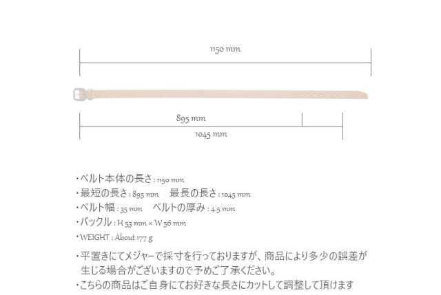 | ベルト長さ | 長さ 115 cm × 幅 3.5 cm | バックル | H 5.3 cm × W 5.6 cm |