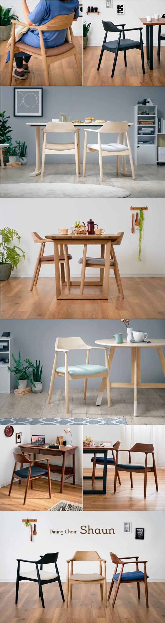 【完成品】ダイニングチェア ダイニングチェアー 肘付き Shaun(ショーン) 1脚 10色対応 デスクチェア ダイニング リビングチェア 布 PVCレザー 木製 無垢材 木製チェア 木製椅子 食卓椅子 シンプル おしゃれ