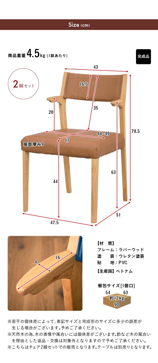 【完成品】ダイニングチェア ダイニングチェアー 肘付き 2脚セット Lamy(ラミー) 3色対応 リビング リビングチェア おしゃれ 椅子 ダイニング PVCレザー 木製 木製チェア 木製椅子 食卓椅子 シンプル