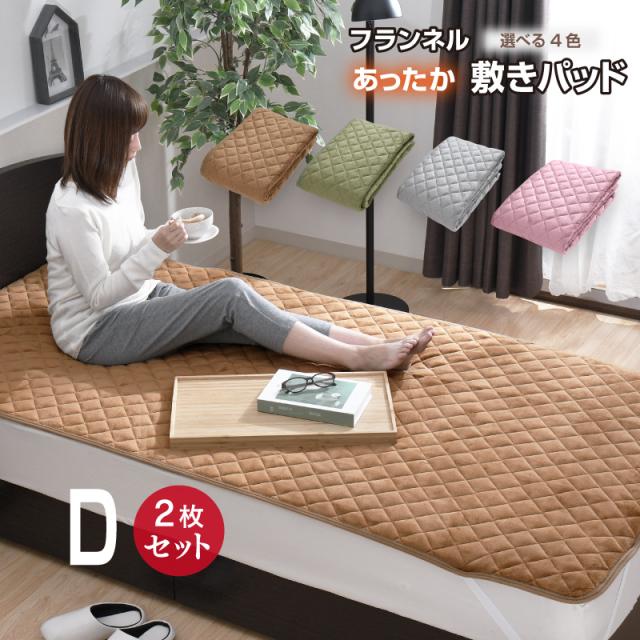 敷きパッド 同色2枚セット フランネル ダブル 140×205cm 選べる4色 あったか なめらか 秋冬用 暖かい 敷きパット 敷き布団カバー ベッドパッド ふんわり ぽかぽか 大人カラー 洗える 冬用 お得な2枚セット