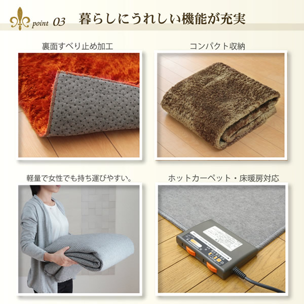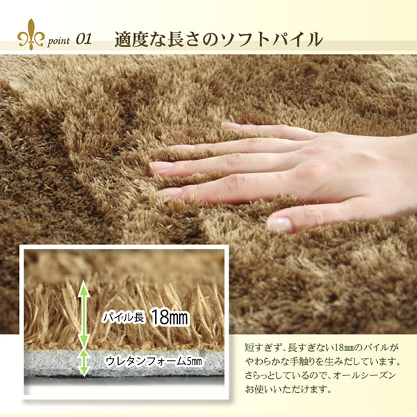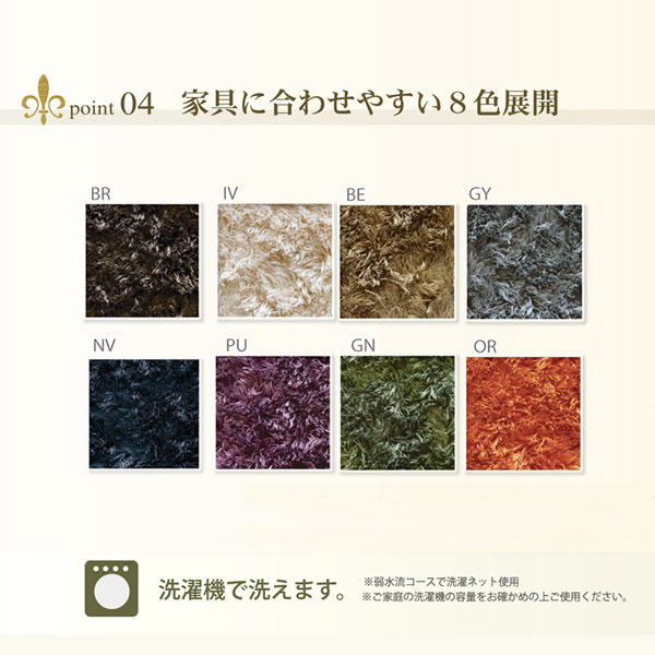 | 組成 | 表地=ポリエステル100%【シャギー調】 裏地=ポリエステル100%【不織布】 ※滑りにくい加工 中材=ウレタンフォーム5mm |