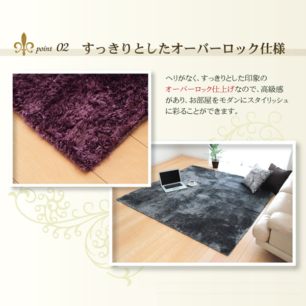 お部屋に合わせやすい高級感あふれるオーバーロック仕様のラグです。