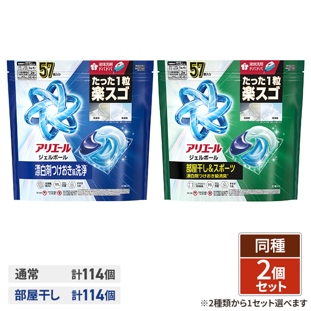 [2種類から1種類選択] アリエール ジェルボールプロ 洗濯洗剤 つめかえ メガジャンボ 通常/部屋干し 57個×2個セット 大容量 詰替え 洗剤