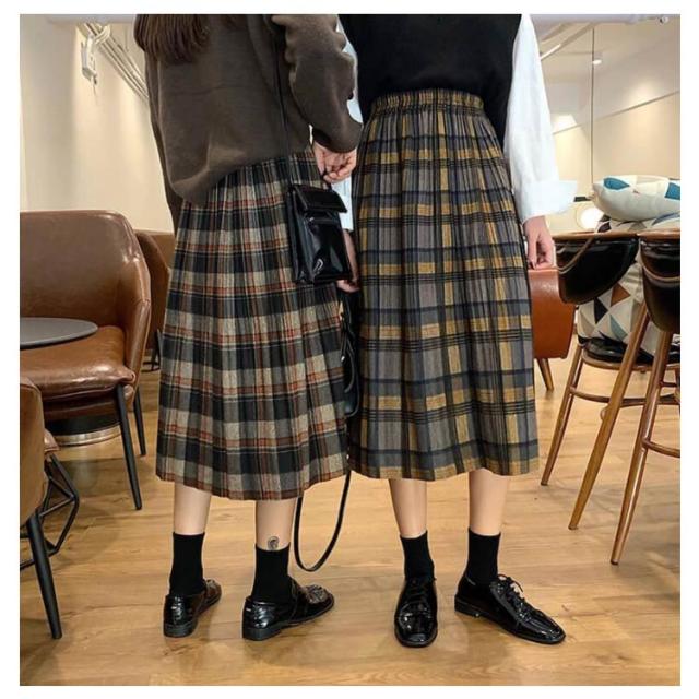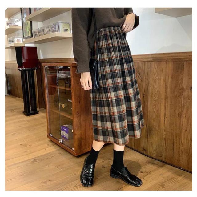 フォーマル 通勤 スカート 体型カバー ロングスカート ミモレ丈 大きいサイズ 秋冬 プリーツ スカート チェック ハイウエスト フレアスカート 大人可愛い ラシャ プリーツスカート 通学 ロング丈 ストレッチ 送料無料 体型カバー ボトム レディース