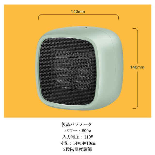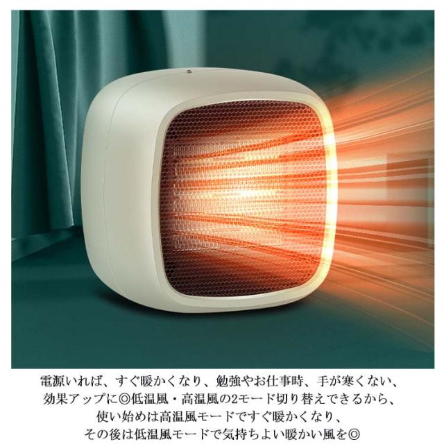 | 【2秒速暖・2送風モード】電源いれば、すぐ暖かくなり、勉強やお仕事時、手が寒くない、効果アップに◎低温風・高温風の2モード切り替えできるから、使い始めは高温風モードですぐ暖かくなり、その後は低温風モードで気持ちよい暖かい風を◎ 【2重安全保護】加熱保護と転倒自動電源OFF機能搭載で、火災の発生を防ぎます。 【広角送風】部屋全体を暖める、暖かい冬を◎一人暮らしに是非お勧め。 【静音・光なし】こっそり稼働し、お仕事や睡眠を影響することなくお使い頂けます。 【簡単操作】ワンボタンで操作するから、お年寄りも簡単にお使い頂けるから、祖母や父へのプレゼントとしても大人気。 【安全&安心な材質】ABS防火シェル、難燃材料で、火災ややけどなど防げ、もっと安心・安心。 【置くだけでインテリアにもなる】コロンとしたレトロなデザイン、シンプルでスタイリッシュ◎ 【コンパクトなサイズで持ち運び便利】軽量で持ち運び便利なミニサイズ、卓上、トイレ、バスルーム、脱衣所など必要な時、どこでも使えます。 【足元冷え対策】オフィスやご自宅などデスワークする時、足元において、冷え取りにも◎体が暖かくなる。 | |