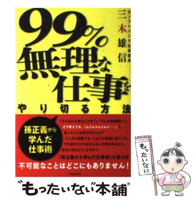 商品名:【中古】 99%無理な仕事をやり切る方法 孫正義から学んだ仕事術 / 三木雄信 / フォレスト出版 [単行本(ソフトカバー)]【メール便送料無料】