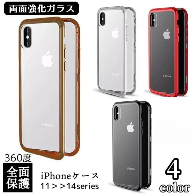 スマホケース iPhoneケース 14 13 12 11 アイフォンカバー 両面ガラス 全面保護 マグネットバンパー フルカバー