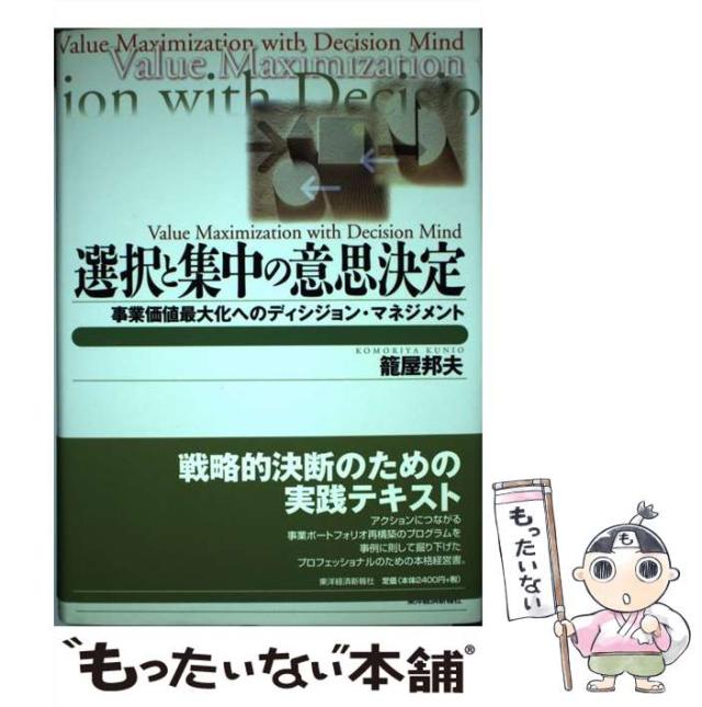 商品名:【中古】 選択と集中の意思決定 事業価値最大化へのディシジョン・マネジメント (BEST SOLUTION) / 籠屋 邦夫 / 東洋経済新報社 [単行本]【メール便送料無料】