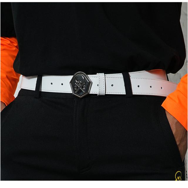 【DIVINER GOLF】 ゴルフ ベルト メンズ 本革 カジュアル ゴルフ ブラック 黒 ホワイト 白 オシャレ コーデ レザー 本皮 ブランド スカル どくろ ロゴ ゴルフ服 ディバイナーゴルフ お兄系 オラオラ系 ちょいワル 夏服 夏 夏新作 新作
