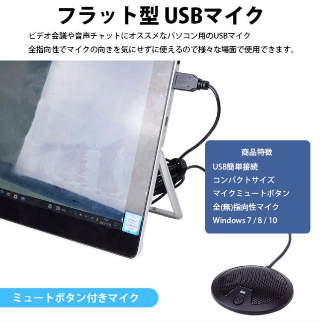 USB マイク フラット型 マイク ミュートボタン付き 全指向性 パソコン PC 小型 コンパクト ビデオ会議 ボイスチャット PR-EY600【メール便 送料無料】