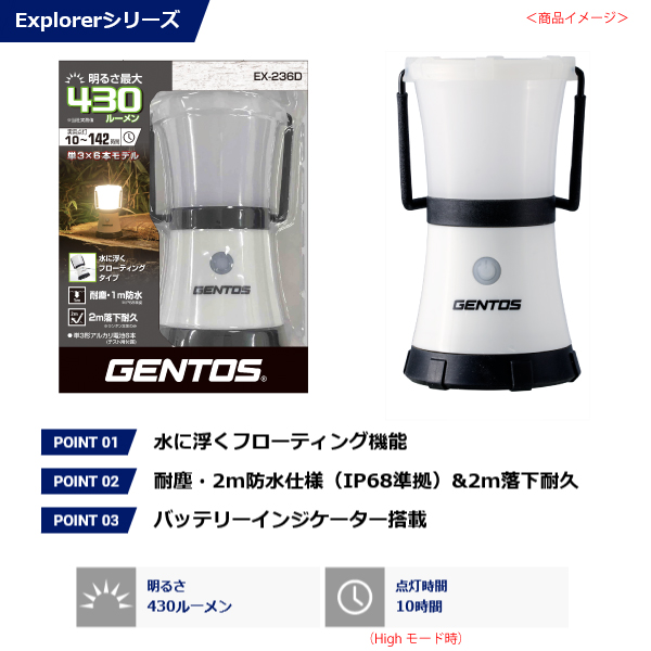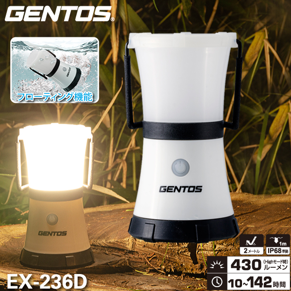 ジェントス Explorerシリーズ LEDランタン EX-236D 430ルーメン 乾電池式 水に浮くライト LEDライト/ランタン/電灯/作業灯/レジャー/アウトドア/災害時にも
