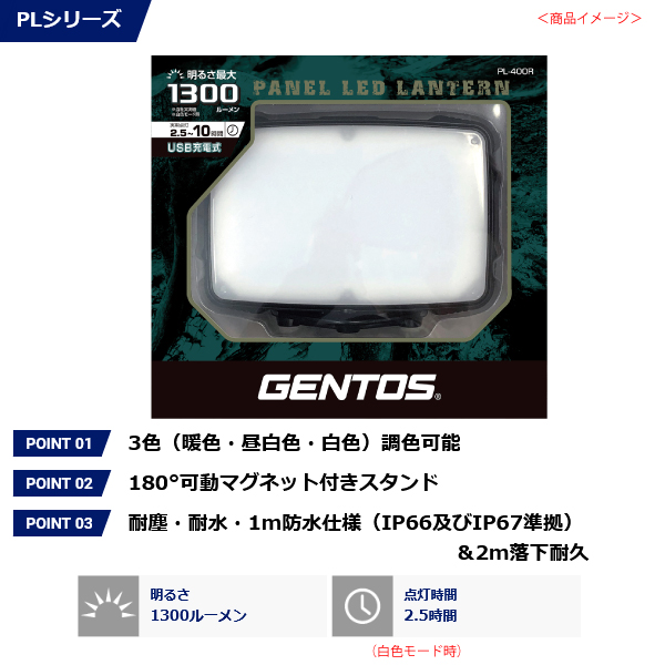 ジェントス PLシリーズ パネルタイプ LEDランタン PL-400R 1300ルーメン USB充電式 LEDライト/ランタン/電灯/作業灯/レジャー/アウトドア/災害時にも
