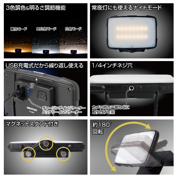 ジェントス PL-400R パネルライト 大 PLシリーズ パネルタイプの充電式LEDランタン 可動マグネット付きスタンド ナイトモードを使って常夜灯としても