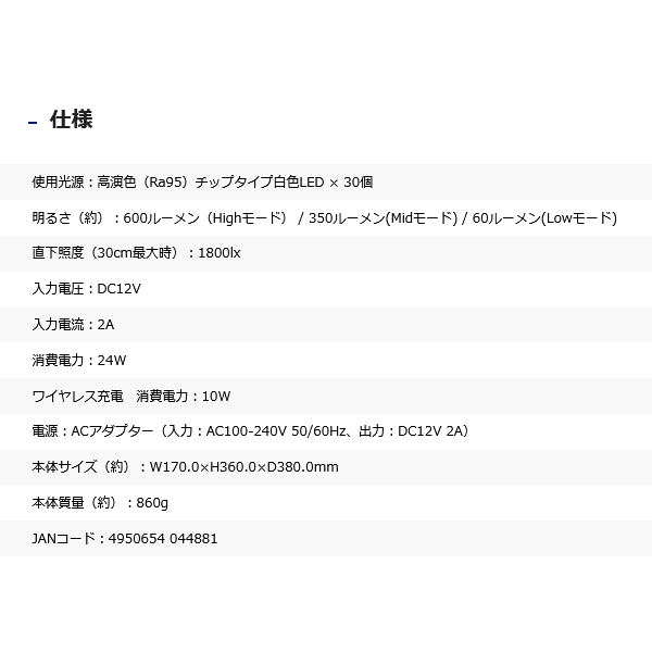 - ワイヤレス急速充電スタンド付き(10W無線給電規格Qi対応)