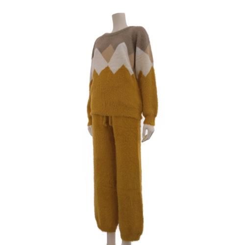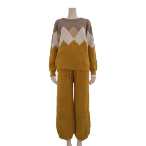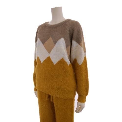 【グラシア】 ルームウェア モコモコ パジャマ 部屋着 シルエット セットアップ ゆったり マスタード フリーサイズ