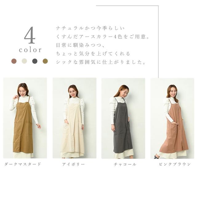 - 色も落ち着いた色で気に入りました。ワンピースを着る事が多い為、ロングのエプロンはとても助かります