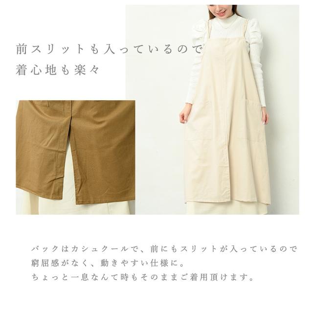 - 素材が綿であるところ、紐の長さの調節が簡単に出来るところ、ポケットやスリットがあるデザインが大満足です。
