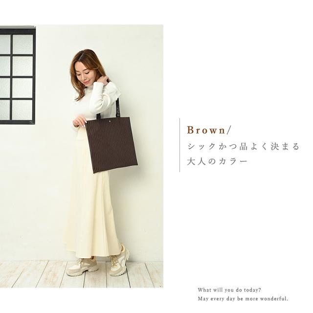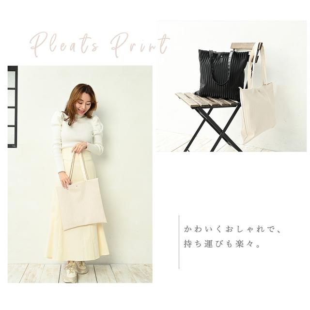 - プリーツが印刷されたものが初めてで、見た目がプリーツなので思わず何度もさわってしまいます(笑)ブラックを購入したのでどんな服にも合ってA4も入るので使い勝手がいいです。持ち手が少し弱そうなのですが、お値段も安かったのでまぁいいかと言う感じです!