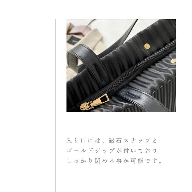 | 商品の説明 | プリーツをあえてプリントで表現したショルダーバッグ。 さっと拭くだけでケアも簡単なのでデイリー使いにぴったり。 季節を問わず使えるのも嬉しいポイントです。 ランダムプリーツの立体感を特殊なプリントで表現。 光沢感も相まって、品のいい大人スタイルに馴染むデザインに。 落ち着いたトーンのニュアンスカラー4色をご用意。 それぞれ印象は異なりますが シーズン・シチュエーション問わず使えるので、イロチ買いもおすすめです。 肩紐部分は、フェイクレザーでリッチな印象に。 光沢感のある素材に特殊なプリントを施し プリーツの質感を表現。 入り口には、磁石スナップとゴールドジップが付いておりしっかり閉める事が可能です。 |