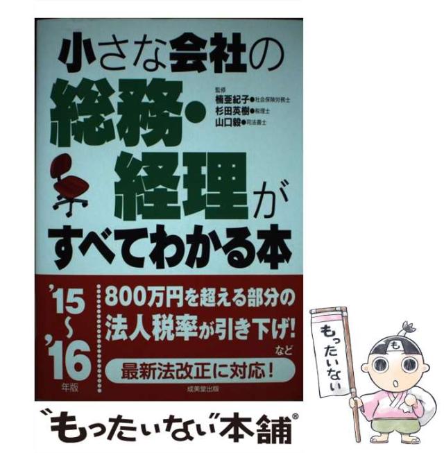 商品名:【中古】 小さな会社の総務・経理がすべてわかる本 ’15〜’16年版 / 楠亜紀子 杉田英樹 山口毅 / 成美堂出版 [単行本]【メール便送料無料】