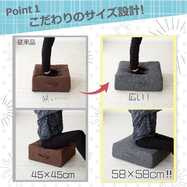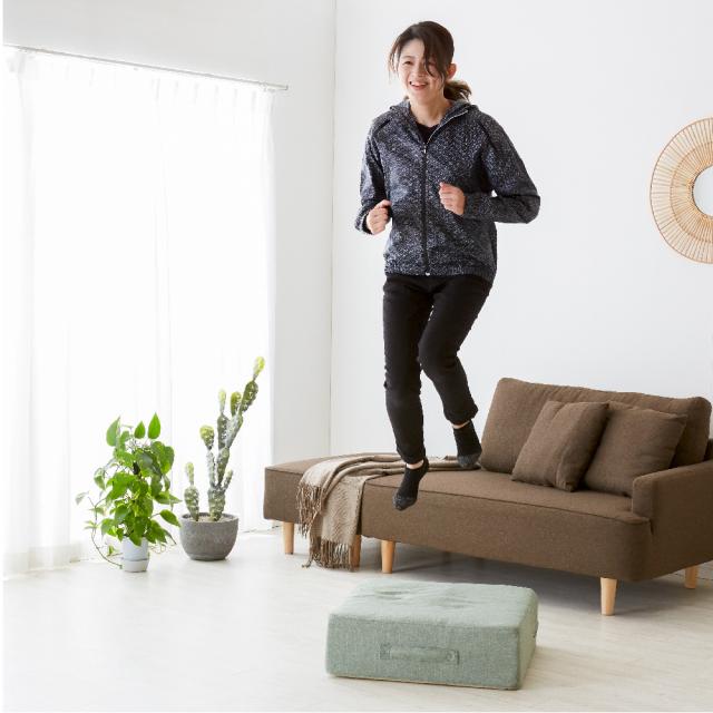 トランポリン クッション 58×58cm ファブリック ポケットコイル クッショントランポリン エクササイズ 大人用 子供 静音 ダイエット プレゼント 反発力 収納袋 取手付き オットマン クッション ヨガ ジャンプ 室内 おしゃれ TN KS