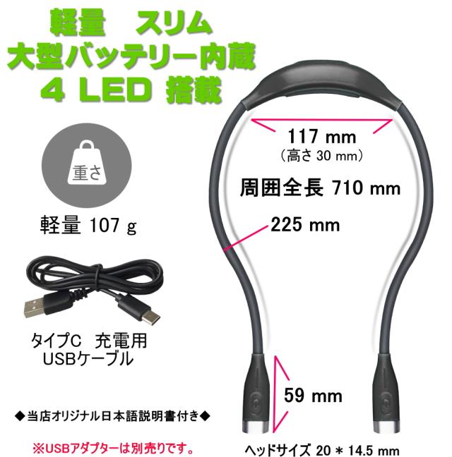 サイズ:周囲合計 710 mm , ヘッド部分 59 * 20 * 14.5 mm , バッテリー部分 117 * 30 mm