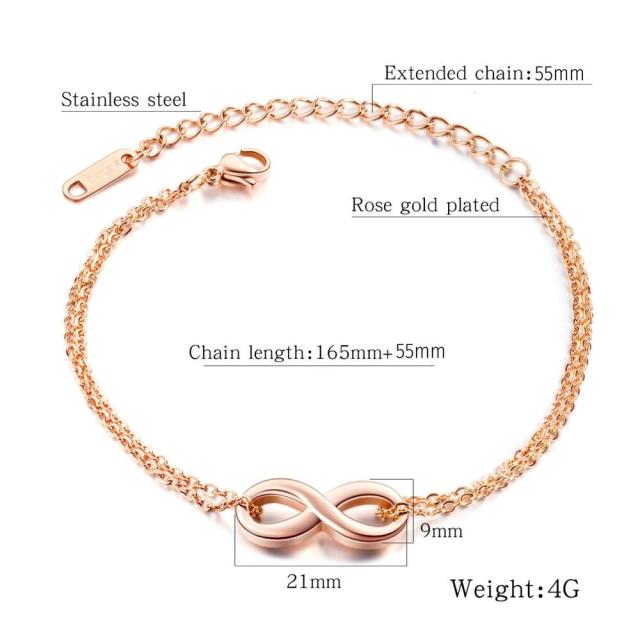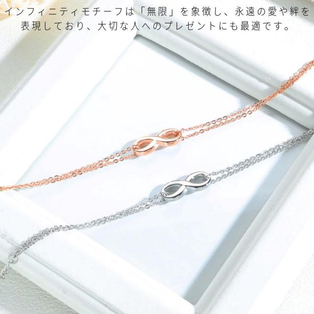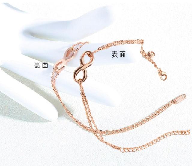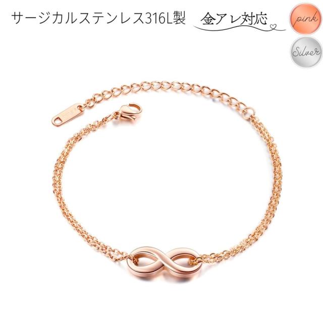 ステンレス ブレスレット つけっぱなし 金属アレルギー対応 レディース 大人華奢 シンプル 2連チェーン インフィニティ ブレスレット アンクレット k18 ピンクゴールド シルバー ステンレス チェーン 小豆 2連 ∞ モチーフ 8数字 カジュアル かわいい おしゃれ ご褒美