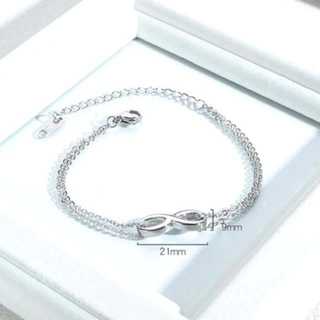 サージカルステンレス316L製 2連チェーン インフィニティ8数字ブレスレット/アンクレット兼用