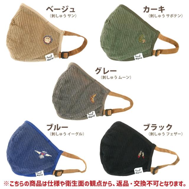 マスク コーデュロイ素材 ヒモ 調節できる 抗菌 ガーゼ 三重構造 秋冬 ノーズワイヤー入り am-mask-001 メール便は送料無料 布マスク メンズ レディース おしゃれ 抗ウイルス 男女兼用 刺繍 ネイティブアメリカン ガーゼマスク トリプルガーゼ 鼻あて 大人 男性 女性