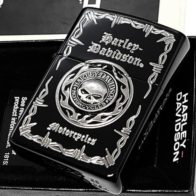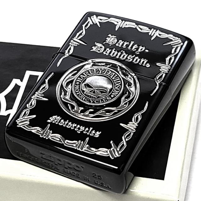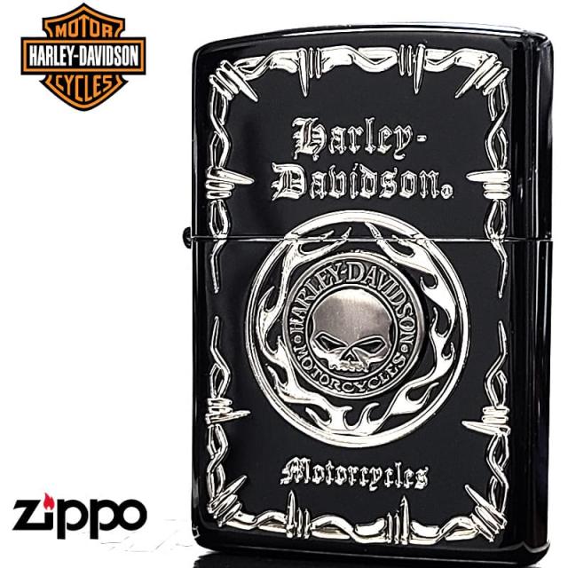 ZIPPO ライター ハーレーダビッドソン ジッポ イオンブラック スカルメタル 黒&銀差し 国内限定モデル かっこいい ドクロ おしゃれ