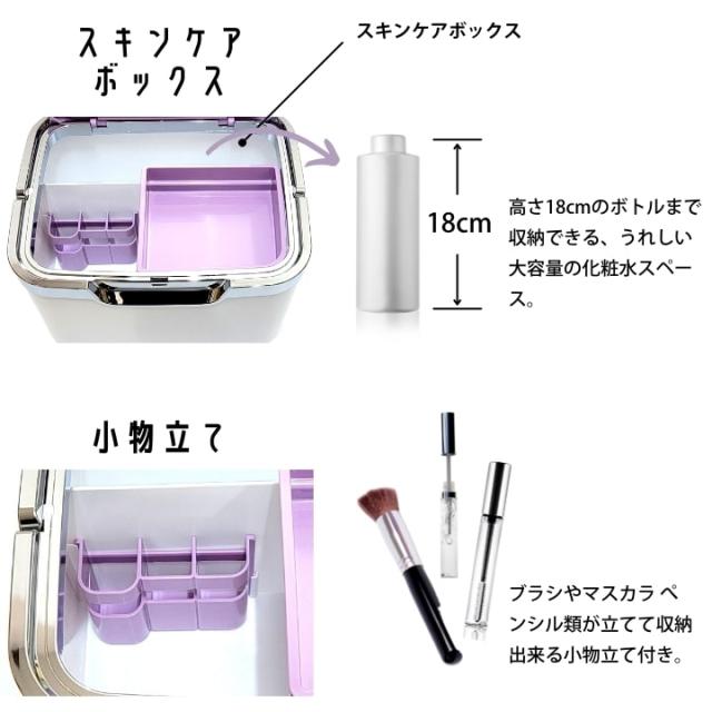 これまでは、スキンケア用品とメイク用品は別々に収納していました。 それがこのボックスに全て収納できたので助かりました。 軽いので移動が楽ですし、見た目も品があってかわいいです。