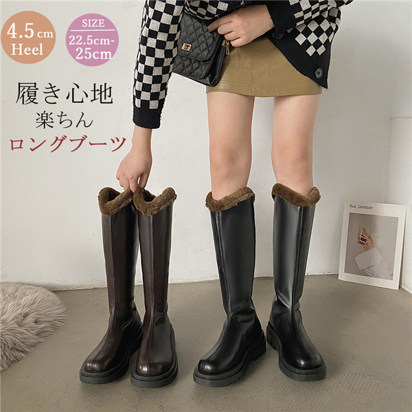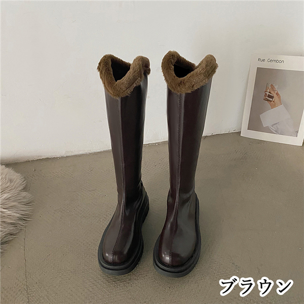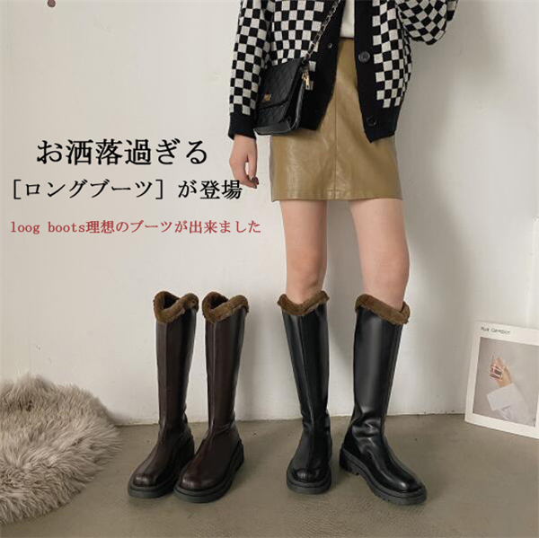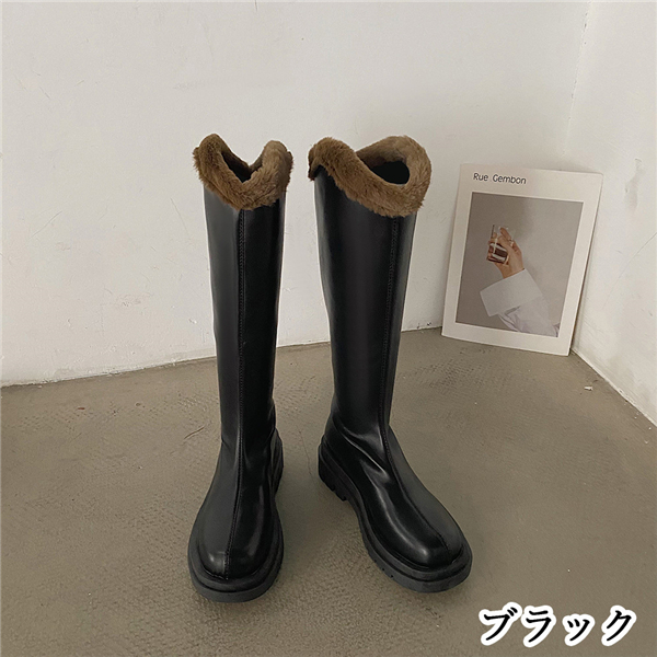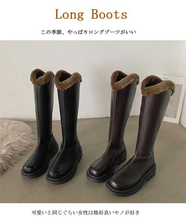 ブーツ ロングブーツ シューズ レディース 太ヒール 厚底 シンプル 美脚 着痩せ 太めヒール ハイブーツ レディースシューズ 秋冬靴 歩きやすい 保温 防寒 無地 スムース カジュアル