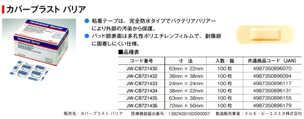 テルモ カバープラスト バリア 24mm×24mm 100枚【医療用防水救急絆創膏】