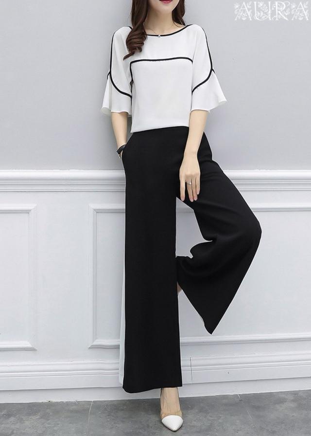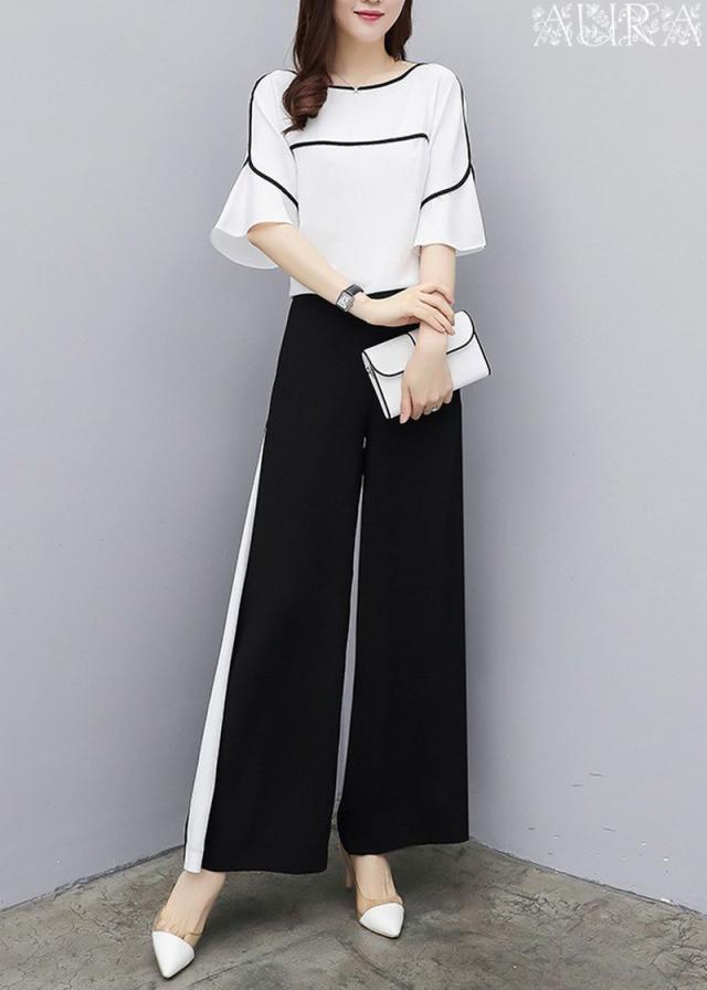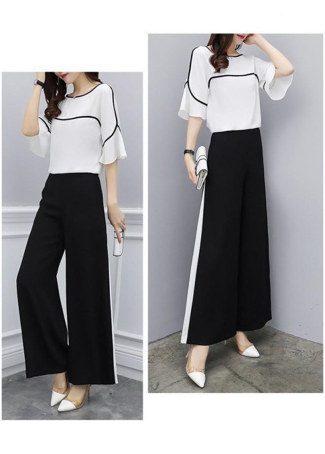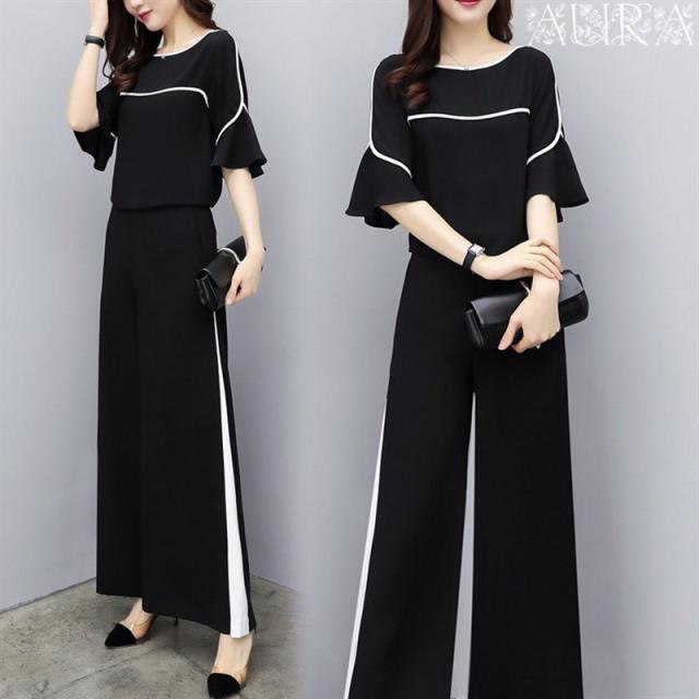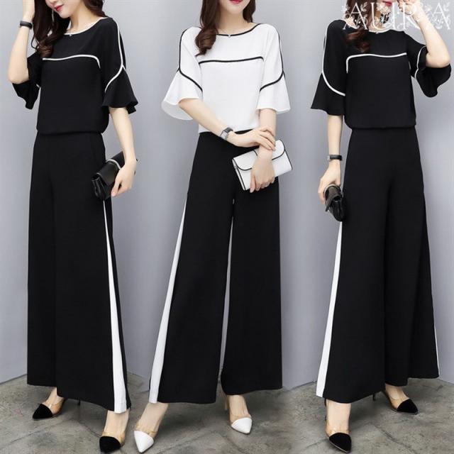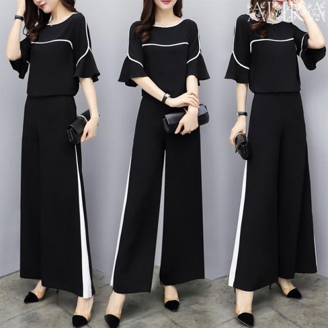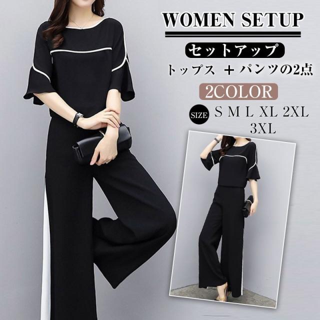 セットアップ ワイドパンツ レディース きれいめ 2点セット トップス 五分袖 シフォンブラウス 体型カバー ゆったり 上品 夏服 カジュアル 30代 40代 通勤 OL
