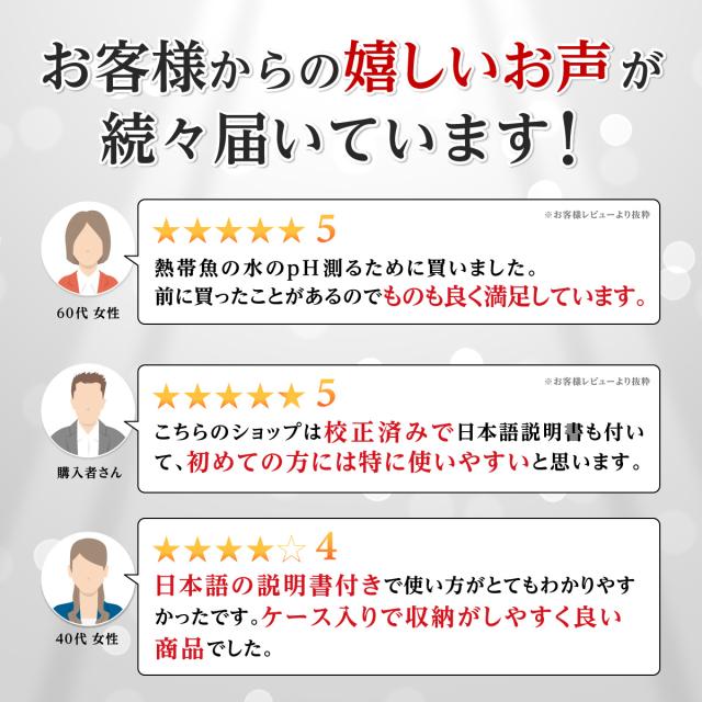 アクアリウムの水質管理や液体肥料の濃度調整やプールや飲料水の水質測定に。