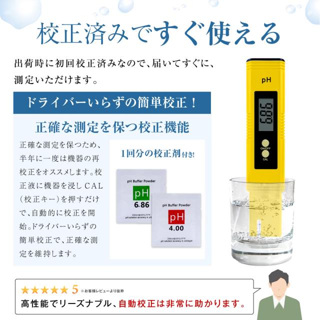 PH測定器 高精度 デジタルPH計 アクアリウム PHメーター PHチェック 校正不要 ペーハー 測定器 水質検査 水槽 液体 水質測定用 ペーハー計 校正 自動校正 校正剤付き ポケットタイプ 簡易 日本語説明書付き 送料無料