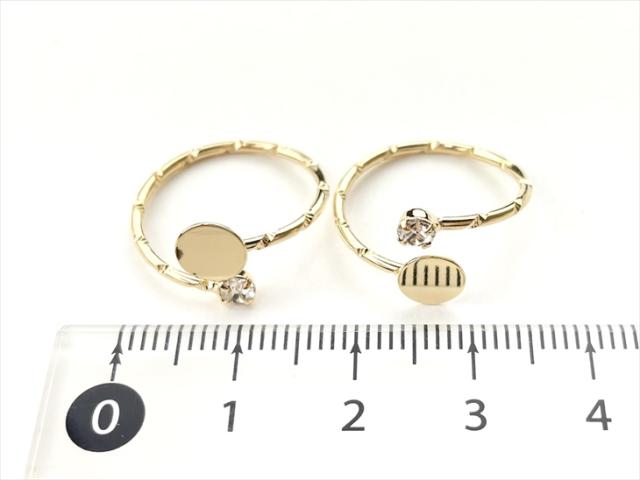 【送料無料】リングパーツ 平皿付き カットデザインアーム ストーン付き ゴールド 平皿6mm 10個 10ヶ リング台 台座指輪 リングベース 約0.6cm アクセサリーパーツ パーツ 問屋 セッティング 台付 貼付 フォークリング アジャスタブル さや工房 手作り