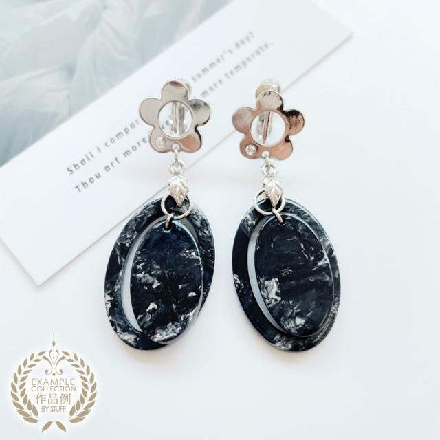 マーブルパーツ 楕円形 二つ穴 ブラック