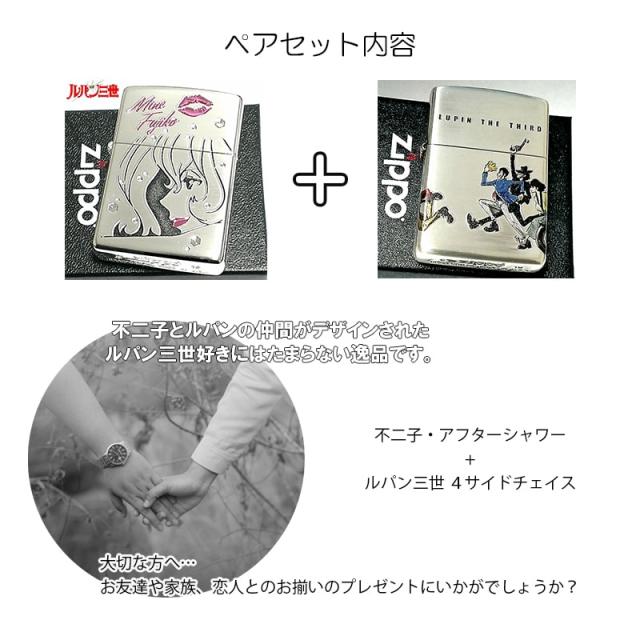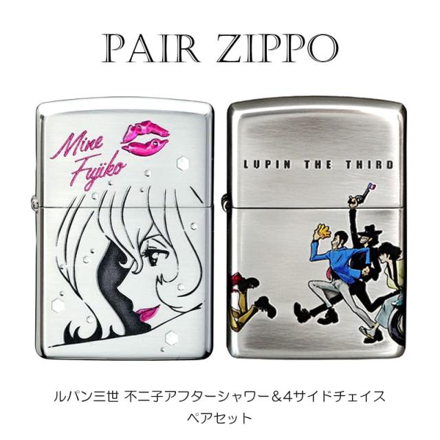 ジッポ ペア ライター セット ルパン三世 ZIPPO 不二子 アフターシャワー 4サイドチェイス 4面連続加工 シルバーイブシ 可愛い メンズ レディース