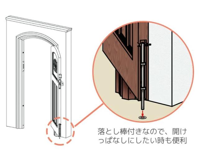 落とし棒による開いた状態で固定する機能も装備しています。