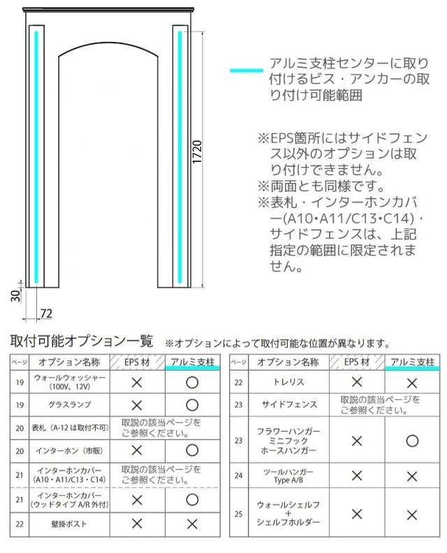 ポストや表札、ガーデンアイテムの取り付けが可能です。