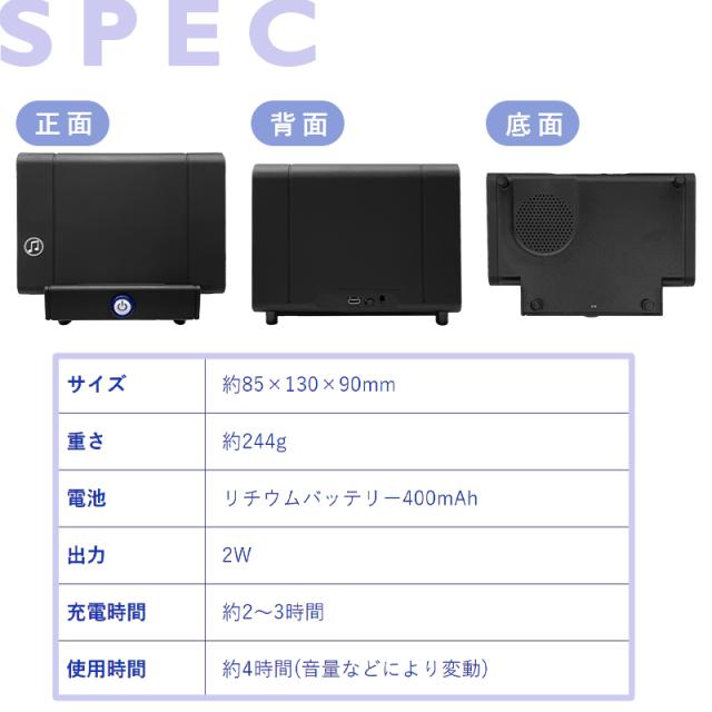 スマートフォンをスピーカーに置くだけで、音楽や動画が迫力サウンドで楽しめます。