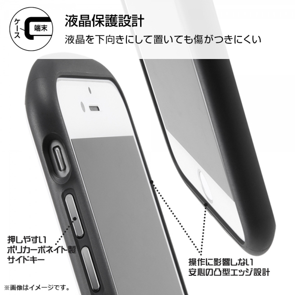 衝撃をやわらげるTPU素材と鉛筆硬度3Hで傷に強いポリカーボネイト素材。